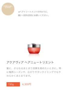 まずは、基本的なサロンケアトリートメントメニューの《Aujuaトリートメント》ですが、