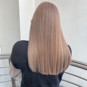 今回はグラデーションとハイライト履歴のある方をフルブリーチしてベージュとラベンダーのミックスでつくりました。