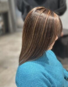 今回はブリーチ無しのハイライトを入れながらのカラーor 白髪染めカラーです。