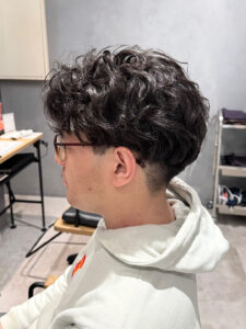 少し強めのパーマでウェーブを作り、ワックスやムースで仕上げるとスタイリングも簡単です!!